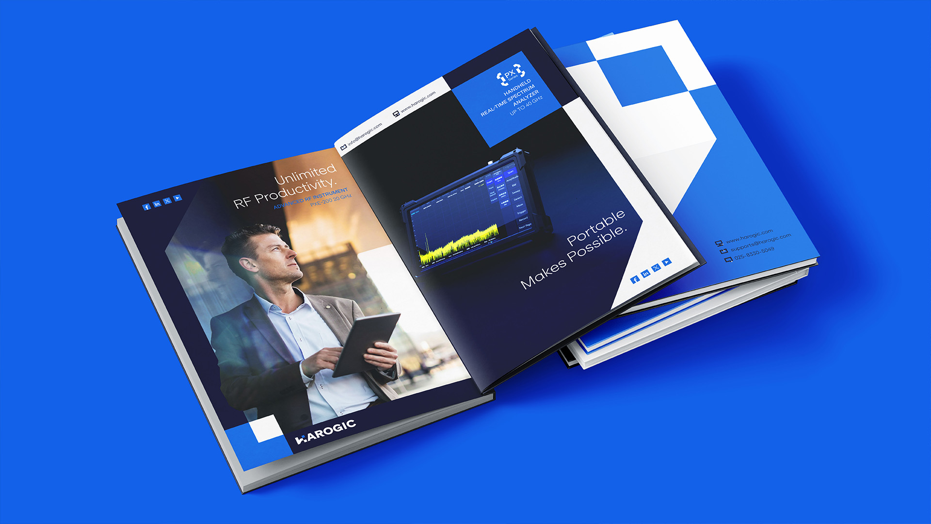 上海vi設計公司煥識幫助南京海得邏捷信息科技公司在2025年全面煥新升級了海得科技logo設計,頻譜分析儀vi設計,射頻儀器品牌設計, HAROGIC海外網站設計等,助力科技產品國際化的品牌定位及品牌形象設計。