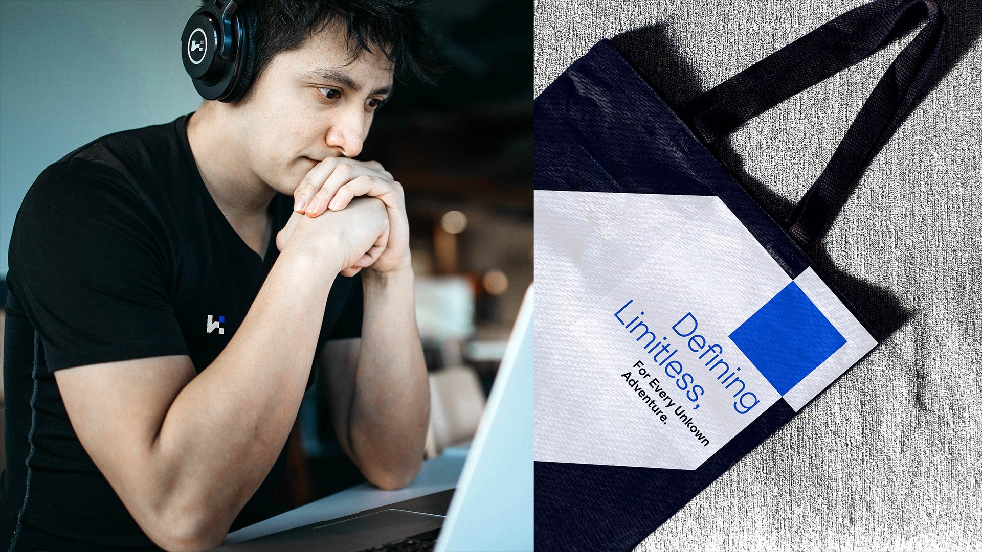 品牌字標則基于瑞士字體公司 EXTRASET 的 ES Klarheit Grotesk 系列進行精細化修整,保留字體本身帶有的利落切角,使得整體標識在保持硬核穩重的前提下,兼具持續靈活創新的視覺印象。在色彩的選擇上保留了品牌受到行業認同度的藍色印象,但以更高飽和度的Radiance Blue點亮品牌的創新活力,而Dark Sapphire深藍展現品牌的沉穩可靠;與Light Gray或純白的搭配,高對比度的色彩運用則再次強化了品牌大膽求索、且具有沖擊力的色彩印象。此次品牌識別體系的核心不僅在標識與色彩的重新詮釋,由標識記憶點延展而來的品牌圖形版式,結合影像風格與品牌語調的整體建構也是煥新的重中之重。HAROGIC 特殊版式主要由三個元素結合而成:1. 標題語調與排版風格 2. 圖形底板風格與3. 影像風格。所有元素風格設定均從品牌概念出發,要素同調但不同樣的搭配,整體將引導受眾不斷強化向右上揚升的視覺印象,共同完成品牌在受眾中的視覺資產累積。